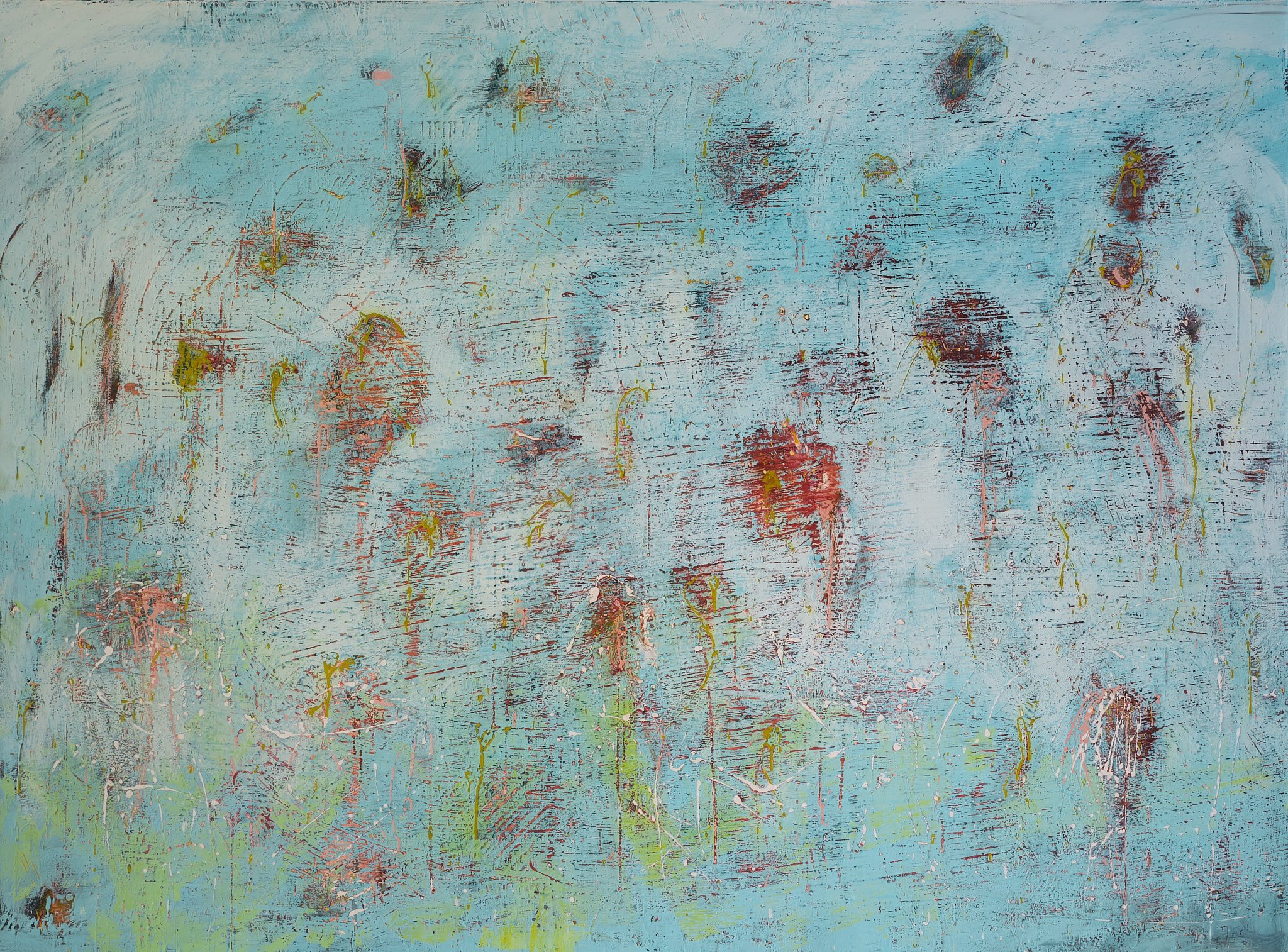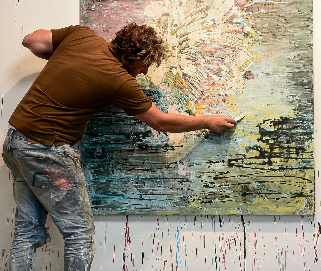 Depth - Conscious and unconscious thoughts fill his art, the making process, the diving physically into layers of gesso, coloured, reveal himself and for the right viewer, themselves. His work is thought out and yet exposes the unexpected.